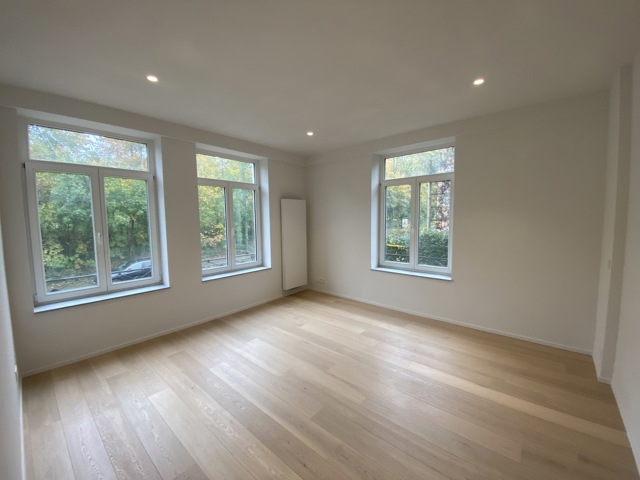 Uccle Quartier Dieweg 1er occupation après rénovation Magnifique. Superbe appartement deux chambres (121m2) avec terrasse (sud-ouest) et jardin dans immeuble de charme. L'appartement est composé d'un hall avec placard, living avec cuisine super équipée (43m2) avec accès terrasse (12m2), buanderie, wc, chambre principale (20m2), chambre deux (10m2), salle de bain avec dressing, salle de douche. Cave. Local vélo. Chaudière gaz à condensation. Double flux. Double vitrage acoustique bois. Thermostat d'ambiance. Possibilité de louer un garage box. PEB C+ Infos & Visites Macnash Sud : jcq@macnash.com - 0475/56.55.55