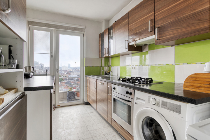 Macnash North is pleased to present this beautiful two-bedroom apartment located in Koekelberg. With approximately 76 sqm PEB of living space, it offers an outstanding panoramic view over all of Brussels. The apartment includes an entrance hall with cloakroom, separate toilet, bright living room with access to a front balcony, a first bedroom, a fully equipped kitchen with access to a rear balcony, and a second bedroom with an en-suite bathroom. A private cellar is also included. The apartment is in good general condition and benefits from a new cogeneration system, allowing for significant energy savings. Monthly provisional charges are around 250 euros and include heating, hot water, elevator, common charges, maintenance, syndic, reserve fund, garbage room, and more. The EPC rating is C and the electrical installation is compliant. For more information or to schedule a visit, please contact Macnash North at 02/881.22.93. Offers starting from 219,000 euros. All measurements and information are provided for informational purposes only and are non-contractual.