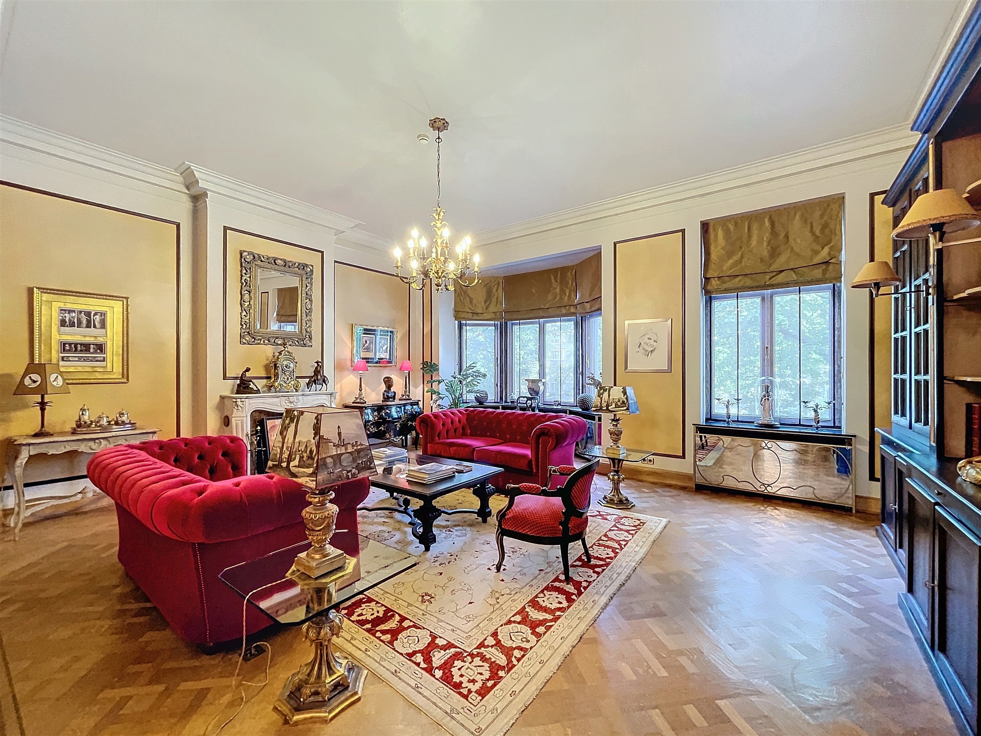À proximité de Montgomery et du Cinquantenaire, situé sur un prestigieux boulevard, somptueux hôtel de Maître de ± 850m² bruts datant de 1914 et rénové avec goût et matériaux nobles en 2016, bâtit sur 4 niveaux avec ascenseur, proposant un vaste jardin de ± 200m² et un garage 3 places. Composition : RDC : vaste hall d’entrée en marbre, hall de réception menant à un majestueux escalier, vestiaire en marbre avec toilettes invités, salle à manger avec parquet et cheminé, cuisine hyper équipée ouverte sur une seconde salle à manger donnant sur une terrasse en pierre bleue et sur le jardin de ± 200m². 1ER : vaste palier, grand salon avec parquet et feu ouvert, grande salle de réception avec boiseries donnant sur une terrasse et le jardin, cuisine d’appoint. 2E : masterbedroom avec dressing, salle de bains et salle de douche, second dressing, grand bureau. 3E : 3 grandes chambres de ± 20, 14 et 12m², 2 salles de bains, salle de cinéma. 4E : grande chambre avec salle de bains, pièce polyvalente (fitness, salle de jeux,...) SOUS-SOL : caves, buanderie, cave à vin, local technique, chaufferie, garage 3 voitures avec porte motorisée, emplacement de parking extérieur. Détails : parfaitement restaurée avec très beaux éléments d’époque, parquet, boiseries, moulures, marbre, cheminées, belle hauteur sous plafond, air conditionné, alarme, vidéophone. Idéalement situé au cœur du quartier européen et proche de toutes commodités. Annonce et indications non contractuelles, sous réserve de modifications. Info : est@macnash.com – Tel : 02 779 99 99 – ID 6597999