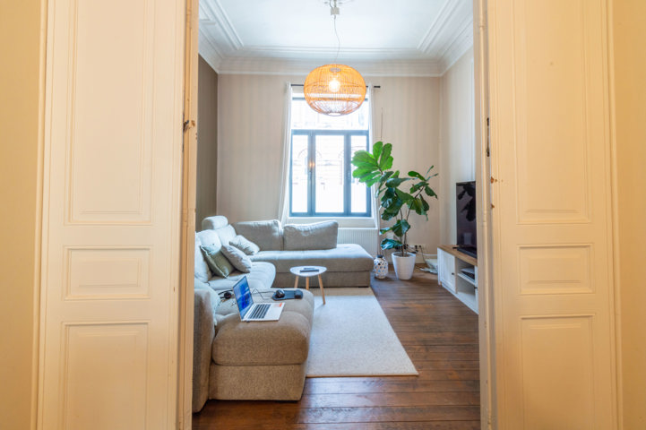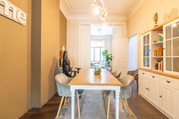 HALLE – This spacious, fully renovated home in excellent condition is perfect for those seeking a move-in-ready property with ample space, comfort, and a central location. Ideally situated right next to the train station and within walking distance of the shopping center, this house combines excellent accessibility with all the benefits of modern living. On the ground floor, the home welcomes you with a generous entrance hall leading to a bright and open living space (56.5 m²). This area includes a cozy sitting and dining area, and a stylishly equipped open kitchen with a central island featuring a breakfast bar, sink, gas stove, refrigerator, dishwasher, oven, and microwave. This space forms the vibrant heart of the home and provides direct access to the sunny south-facing terrace of 30.9 m². On the first floor, you'll find a night hall with separate toilet, a very spacious bedroom (21.6 m²), and a modern bathroom (10.4 m²) equipped with a double sink and vanity unit, bathtub, and separate shower. The second floor offers two additional spacious bedrooms of 21.9 m² and 14.0 m². A fixed staircase leads to the attic level (36 m²), which can be fully converted into an extra bedroom, office, or hobby room. The house also features a basement level with a practical laundry room and additional storage space, totaling 41 m². The electrical installation is fully compliant and certified until 2046. The property is heated with natural gas central heating, and the exterior joinery consists of aluminum window frames with double glazing. Additional features include a water softener. The plot measures 1 are 10 centiares (110 m²), and the cadastral income is €952. The EPC score is 481 kWh/m² (UC: 3115085). Finally, there's the option to purchase a closed garage box just 40 meters from the house – a valuable asset in this central location. Book your visit today: hallepajot@macnash.com
