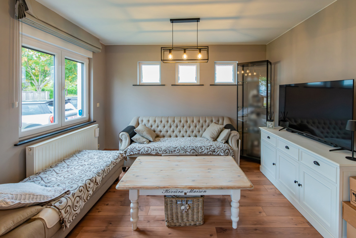 HALLE - In a quiet and well-kept area, you’ll find this charming house that was thoroughly renovated in 2009 and has been perfectly maintained ever since. The home meets today’s standards, including a compliant electrical installation (EPC C, asbestos-free). From the house and the beautifully landscaped west-facing garden, you can enjoy a peaceful open view — perfect for relaxing and soaking up the sun until late in the evening. The property also offers a spacious 30.53 m² garage with an automatic gate and room for two cars, plus a driveway that accommodates several vehicles. A clean, dry cellar provides extra storage space, and the rainwater tank contributes to sustainable living. Layout: entrance hall, WC, kitchen, living and dining area, stairs to the cellar. Upstairs: four bedrooms, landing and bathroom. Currently rented at €1,177/month. Termination possible after deed for personal use with 6 months’ notice. In short: this home perfectly combines comfort, tranquillity, an open view and practical amenities. A unique opportunity for anyone looking for a move-in ready home with that little extra touch!