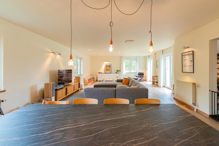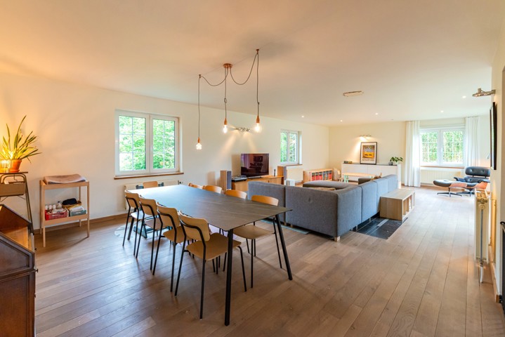 DWORP – In the peaceful and green setting of Dworp, we offer this spacious detached villa built in 1996, set on a 771 m² plot. The house offers a generous net living area of 272 m², all on one level, and combines comfort, space, and luxury in a pleasant living environment. The villa includes four full-sized bedrooms with parquet flooring, a large walk-in closet, and two bathrooms: one with a bathtub and double sink, and a separate shower room with a shower and toilet. The living area is especially cozy with its parquet flooring and fireplace, and connects nicely to the fully equipped kitchen with ceramic hob, oven, microwave, dishwasher, and ample cupboard space. A practical cloakroom with built-in lighting and a separate guest toilet with hand basin provide extra convenience. There is also a functional laundry room. A major highlight is the indoor swimming pool of approximately 50 m², equipped with a separate shower room and toilet – perfect for year-round enjoyment in total privacy. Outside, a large terrace offers the ideal spot to relax or enjoy time with family and friends. Technically, the property is in excellent shape: it has double glazing in PVC frames, an alarm system, 12 solar panels, a carport for two cars, and a driveway with space for two more vehicles. The EPC rating is B, indicating an energy-efficient home. Book your visit now via brabant@macnash.com or call 02/381.27.80!