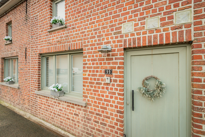 PAJOTTEGEM – Move-in ready semi-detached house with 3 bedrooms, terrace and garden – Schavolliestraat 99, Pajottegem This charming semi-detached home is perfectly maintained and equipped with all modern comforts — completely move-in ready for its new owners. Upon entering, you’ll find a welcoming living room with a pellet stove, creating a warm and cozy atmosphere. The fully fitted kitchen is both practical and stylish, seamlessly connecting to the dining area — ideal for those who love cooking and entertaining. The bathroom features a bathtub and a washbasin. Upstairs, there are three bedrooms, including one particularly spacious room, perfect for a family or guests. The house is fitted with automatic shutters and oil-fired central heating. The electrical installation is fully compliant, and the roof was insulated in 2013, ensuring a comfortable and energy-efficient living environment. Outside, you can enjoy a pleasant and private terrace, perfect for relaxing or dining during the warmer months. There is also an additional outdoor area equipped with a fitness and sauna space — a true asset for those who value comfort and well-being. Book your visit today via hallepajot@macnash.com or by phone at 02/881.17.88!