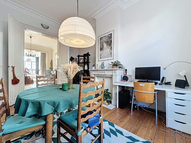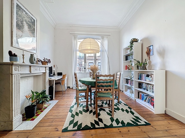 Proche du parc du Cinquantenaire et de la rue des Tongres, charmant appartement MEUBLÉ de 1 chambre de ± 65m² au 1ER étage d'une maison de maitre. Composition : séjour de ± 17m², salle à manger de ± 18m² avec balcon attenant, cuisine hyper-équipée de ± 9m², chambre de ± 13m² avec salle de bains attenante de ± 10m². Détails : parquet d’origine, moulures au plafond, fibre internet, double vitrage, emplacement vélos. Charges : FORFAIT ALL-IN de 250€/mois comprenant eau, gaz, électricité, internet, assurance abandon de recours et entretien des communs. Idéalement situé à proximité de nombreux commerces et commodités : Colruyt, Carrefour, Aldi, Proxy, Brico, librairies, écoles, … Transports en commun : station Mérode, bus 21, 28, 29, 61, 63, 79, tram 7, 25, 81. Annonce et indications non contractuelles, sous réserve de modifications. Info : est@macnash.com – Tel : 02 779 99 99 - ID 7218377
