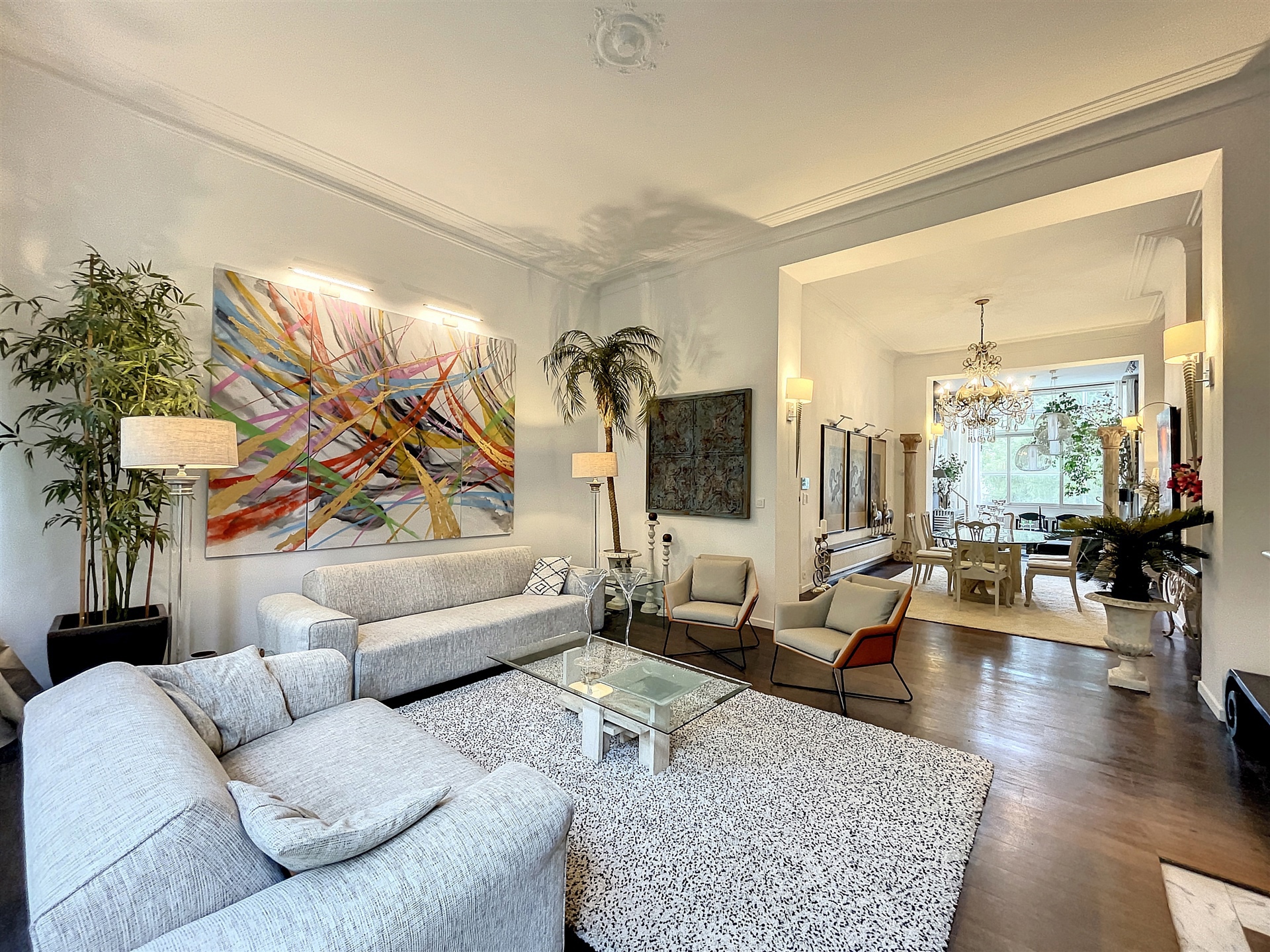 Au cœur du quartier Européen et à proximité immédiate du parc du Cinquantenaire et de toutes ses facilités, somptueux TRIPLEX d’exception de ± 265m² MEUBLÉ avec goût, 4 chambres avec salle de sport. Composition : 1ER : vaste hall d’entrée, magnifique pièce de séjour de ± 70m², cuisine super-équipée de ± 8m². 2E : Hall de nuit, splendide chambre parentale de ± 46m² avec salon privé, grande chambre de ± 20m², belle salle de bains de caractère de ± 7m² avec WC. 3E : Hall de nuit, deux grandes chambres de ± 18m², salle de bains de ± 11m². COMBLE : salle de sport de ± 22m². ENTRESOL : grande buanderie de ± 7,5m² avec WC, machine à laver et séchoir. Détails : mobilier de qualité, meublé avec goût, belle œuvre d’art, hauts plafonds avec moulures, parquet, double vitrage, chaudière à condensation à gaz, vidéophone, disponible immédiatement, PEB D-. Charges : 100 €/mois comprenant l’eau et les communs. Possibilité de louer un emplacement de parking à proximité. Idéalement situé au cœur des institutions européennes et à proximité de toutes facilités : parc du Cinquantenaire, Delhaize, Carrefour Market, Färm, Proxy Delhaize, banques, restaurants... Transports en commun : Métro 1 et 5, Tram 81,39, 44, Bus 27, 36, 80, 61, N06. Annonce et indications non contractuelles, sous réserve de modifications. Info : est @macnash.com – Tel : 02 779 99 99 – ID 7281211