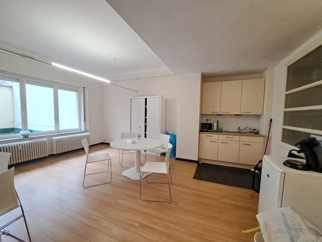 Saint -Gilles, à proximité de la Place Louise et du Palais de justice. Beau bureau de +/- 90m² au rez d’un immeuble moderniste. Il se compose : hall d’entrée avec salle d’attente, un grand bureau de 27m² avec salle d’archive attenante avec un accès a l’eau. Grande pièce arrière avec kitchenette, wc séparé, cours de 40 m². Cave. Volets, doubles vitrages, porte blindée, accès sécurisé. Idéal pour profession libérale. Infos et visites : macnash sud : 0485.734.124 ou jb@macnash.com.