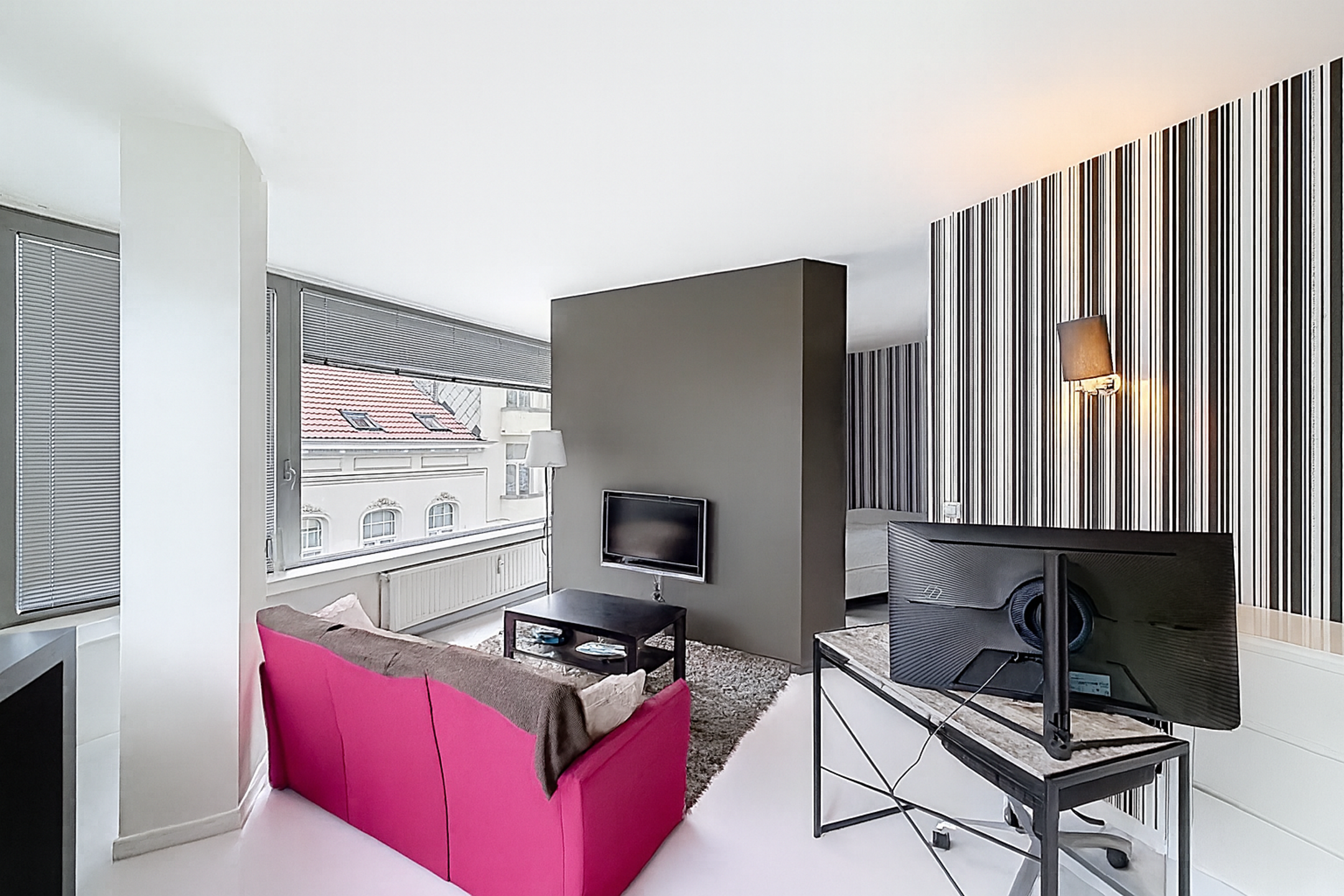 Entre Montgomery et le Parc du Cinquantenaire, au 3E étage d’un petit immeuble avec ascenseur, superbe appartement MEUBLÉ 1 chambre de ± 40m². Composition : hall d’entrée, lumineux séjour de ± 21m² avec cuisine ouverte équipée, chambre avec dressing, salle de douche, WC séparé. Détails : double vitrage, vidéophone, espace buanderie commune, entièrement meublé et équipé. Charges : 250€/mois comprenant l’eau chaude et froide, chauffage, électricité, internet + TV digitale, communs et ascenseur. Idéalement situé à proximité de nombreux commerces et commodités : cœur du quartier européen, Carrefour Market, Delhaize Proxy, The Barn Bio Market, White Night, Léopold Café. Transports en commun : station Montgomery, bus 27, 61, 80, tram 7, 25, 39, 44, 81. Annonce et indications non contractuelles, sous réserve de modifications. Info : est@macnash.com – Tel : 02 779 99 99 – ID 7291704
