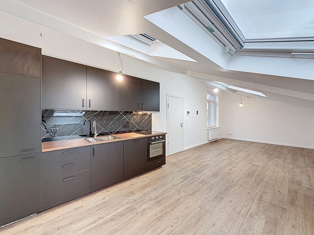 Quartier Montgomery, entre le Square Joséphine-Charlotte et l’avenue Louis Gribaumont, au 3E et dernière étage d’un petit immeuble, superbe studio rénové de ± 36m². Composition : spacieuse et lumineuse pièce de vie de ± 32m² avec cuisine ouverte super-équipée, salle de douche avec wc, cave. Détails : entièrement rénové, première occupation, double vitrage, chaudière individuelle au gaz condensation, 2 panneaux solaires photovoltaïques par appartement, espace buanderie, vidéophone, porte blindée. Petit immeuble, faibles charges : 50€/mois pour l’électricité et l’entretien des communs. Idéalement situé proche de toutes commodités : Carrefour Express, Delhaize Shop&Go, pharmacie, boulangerie, salle de sport, parcs, restaurants, … Transports en commun : stations Joséphine-Charlotte et Montgomery, bus 27, 39, 44, 61, 80, tram 39, 44. Annonce et indications non contractuelles, sous réserve de modifications. Info : est@macnash.com - Tel : 02 779 99 99 – ID 7283185