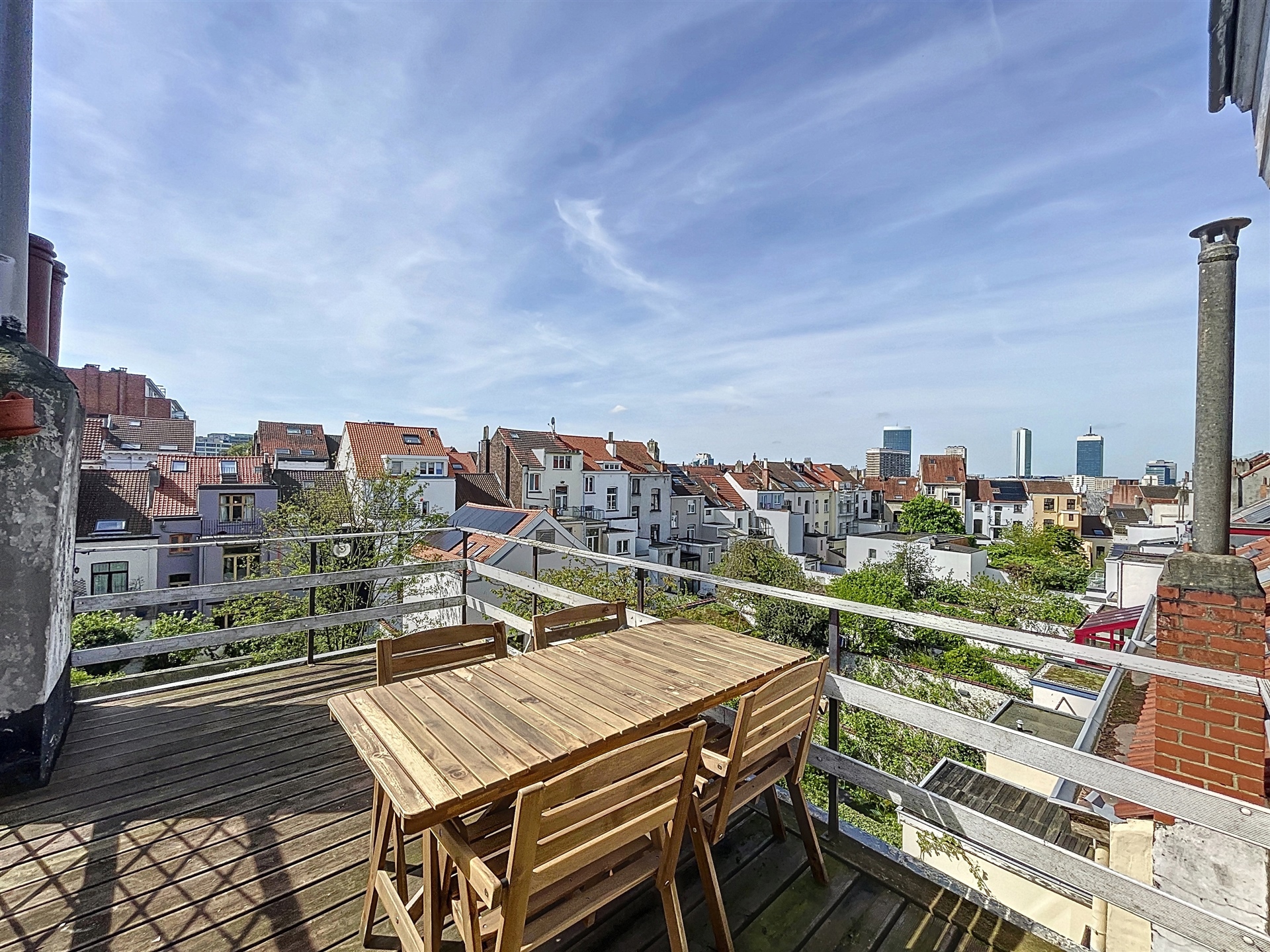 !!! OPTION !!! Entre Ambiorix et le Cinquantenaire, dans une rue calme à sens unique, au 2e et dernier étage d’une petite copropriété, superbe duplex/penthouse de ± 85m² bruts avec grande terrasse orientée SUD-OUEST. Composition : 2E : spacieux et lumineux living de ± 36m² avec feu ouvert, cuisine attenante super-équipée de ± 12m². 3E/COMBLES : hall de nuit, grande chambre de ± 15m², salle de bains avec wc, belle terrasse de ± 10m² orientée SUD-OUEST offrant un large panorama urbain. Détails : parquet massif, double vitrage, chaudière individuelle à gaz, permis de régularisation urbanistique obtenu pour le logement et la terrasse et travaux à réaliser par l’acquéreur. Petite copropriété de 3 logements avec faibles charges. Idéalement situé au cœur du quartier européen et à proximité immédiate du square Ambiorix et du Cinquantenaire, proche de toutes commodités : commerces, restaurants, parcs, écoles, espace sportif. Transports en commun : stations Maelbeek et Schuman, bus 28, 29, 56, 61, 63, 64, 79. Annonce et indications non contractuelles, sous réserve de modifications. Info : est@macnash.com - Tel : 02 779 99 99 – ID 270908