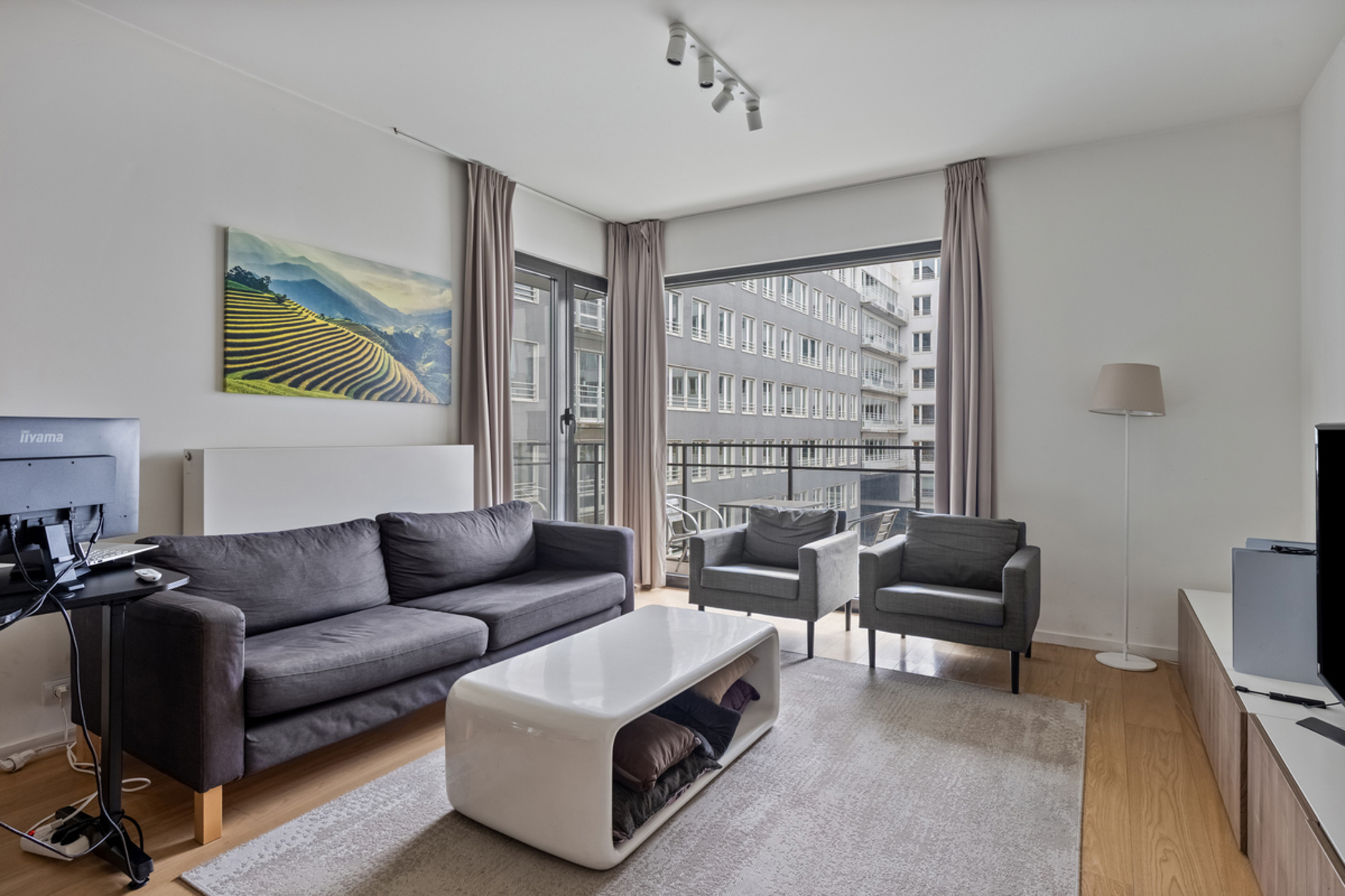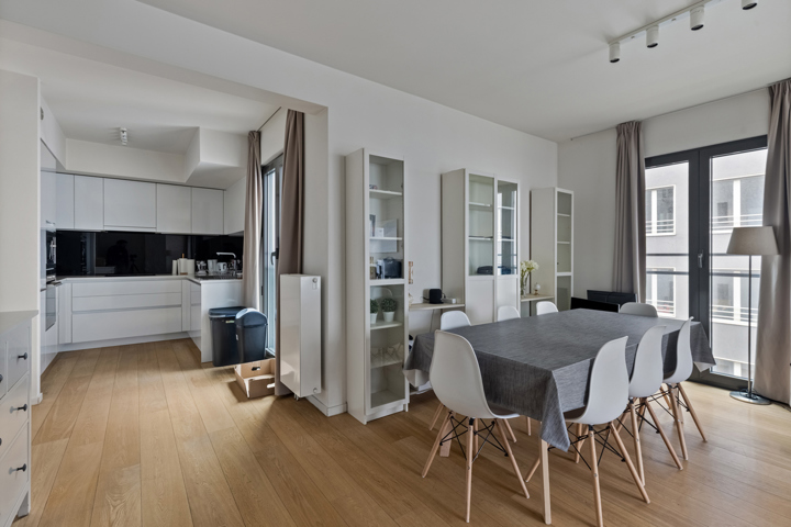 Macnash North heeft het genoegen u dit appartement voor te stellen, gelegen in een wijk in volle ontwikkeling, op een steenworp van Tour & Taxis. Gelegen op de 3e verdieping van de groene en aangename mede-eigendom "Up Site", gebouwd in 2014, geniet het van veel lichtinval en een rustige omgeving. Met een bewoonbare oppervlakte van +/- 120m² beschikt het over een terras van +/- 16,8m². Het appartement omvat een inkomhal, een apart toilet, een modern volledig ingerichte keuken en een ruime woonkamer van +/- 37m² met toegang tot het terras. De nachthal leidt naar twee slaapkamers van +/- 9m² elk, een doucheruimte, een tweede apart toilet en een grote slaapkamer van +/- 15m² met toegang tot een badkamer met douche. Het appartement heeft een uitstekende energieprestatie met een EPC van klasse B en een conforme elektrische installatie. Een kelder is inbegrepen en er is de mogelijkheid om één of twee parkeerplaatsen aan te kopen voor 25.000€. Momenteel is het appartement verhuurd voor 1.545€ exclusief lasten met een huurovereenkomst van één jaar die afloopt in december 2025. Het is mogelijk om de huurovereenkomst eerder te beëindigen mits wederzijds akkoord. De mede-eigendom biedt tal van voordelen, zoals exclusieve toegang tot de gemeenschappelijke tuin, een lift, een vuilnislokaal, een fietsenstalling en een beveiligingssysteem. Alle voorzieningen en openbaar vervoer bevinden zich in de onmiddellijke nabijheid, wat het dagelijks leven vergemakkelijkt. Voor een bezoek, neem contact op met Macnash North via 02/881.22.93.