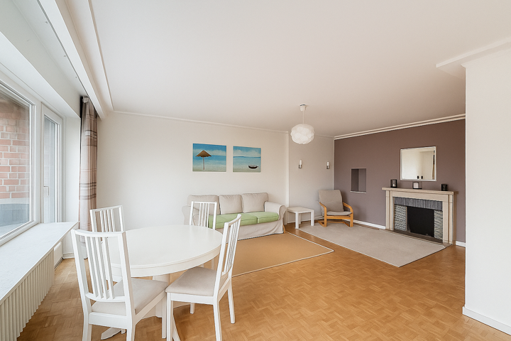 Entre le Square Ambiorix et le Parc du Cinquantenaire, au 7E étage d'un bel immeuble avec ascenseur, superbe appartement 2 chambres ± 94m² (bruts peb) avec terrasse et parking. Composition : Hall d'entrée avec large vestiaire, spacieux et lumineux living ± 33m² avec cuisine attenante de ± 8m² et accès à une longue terrasse filante ± 12m², hall de nuit, belle chambre ± 14m² avec lavabo, chambre principale de ± 17m² avec placard encastré et salle de bains attenante, débarras de ± 4m², wc séparé, cave. Emplacement de parking en supplément de 25 000€. Détails : parquet d'époque en excellente condition, double vitrage, électricité conforme. Charges : 450€/mois comprenant l’eau, le chauffage, les communs, l’ascenseur, le syndic, l’assurance, ... Idéalement situé au cœur du quartier Européen, à proximité de toutes commodités : commerces, parcs, restaurants, Transports en commun : Station Schuman, bus 12, 21, 56, 63, 64, 79. Annonce et indications non contractuelles, sous réserve de modifications. Info : est@macnash.com – Tel : 02 779 99 99 – ID 7253141
