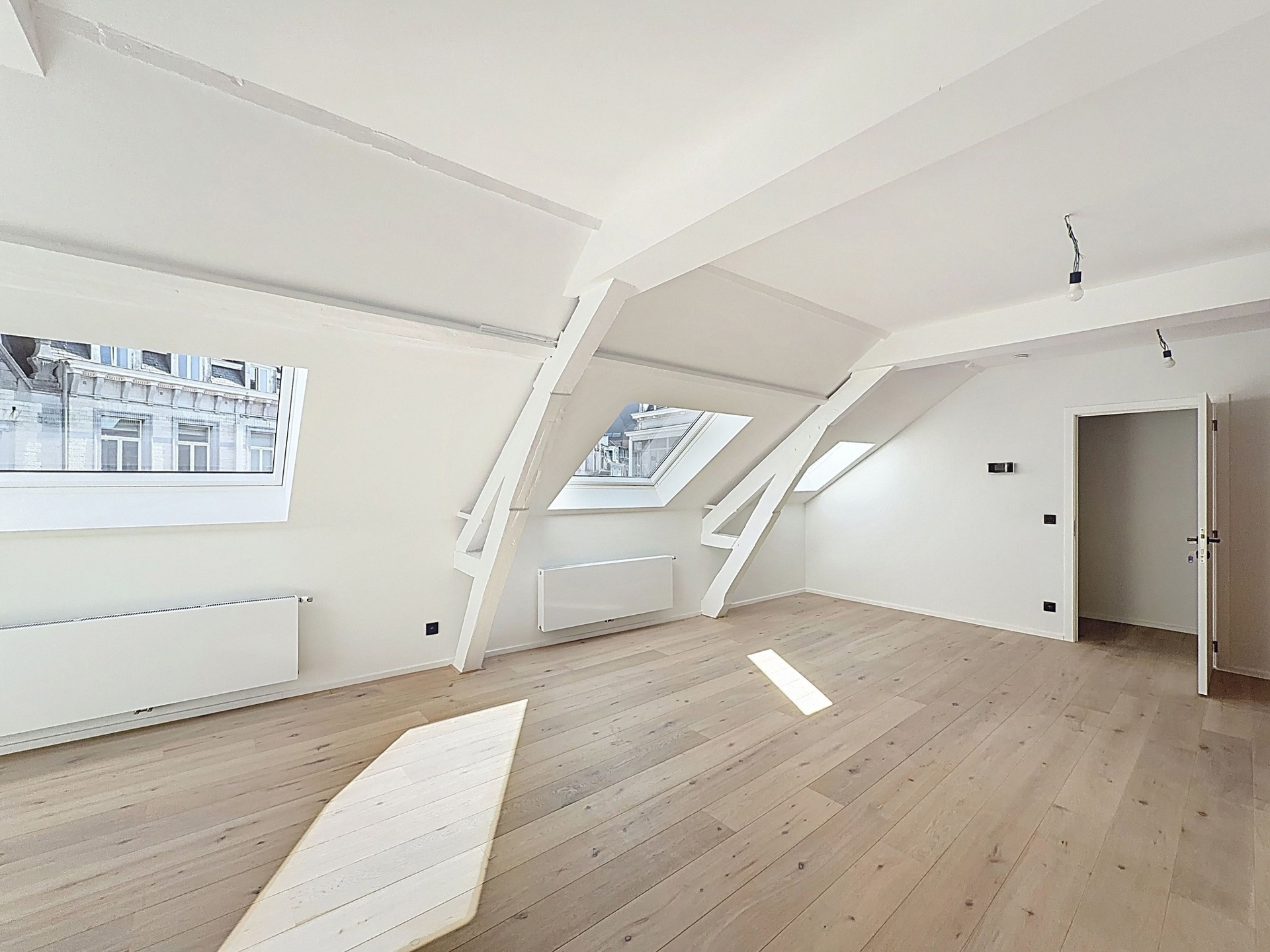 !!!OPTION !!! En plein cœur du quartier du grand Sablon, dans un magnifique hôtel particulier du XIXe siècle, avec entrée cochère et cour intérieur commune, vente de 6 appartements de caractère entièrement remis à neufs en 2025 (1e occupation), finitions et matériaux de qualité, terrasses Sud-Ouest. La petite copropriété comprend au total 11 unités. Les 6 logements vendus sont situés au 2e, 3e et 4e étage de l’immeuble avant, accès via l’escalier d’honneur en chêne de style baroque, ils cumulent ± 400m² brut + terrasses ± 47m². Composition : 2E : duplex ± 98m² avec 2ch + balcon, studio ± 27m², appartement ± 76m² avec 2ch + terrasse ± 20m². Au 3E : appartement ± 55m² avec 1ch + balcons. Au 4E : penthouse/duplex ± 106m² (mesure au sol / mansardé) 2 ch + terrasse ± 17,5m² avec une vue exceptionnelle sur Bruxelles. Caves en sous-sol. Rénovation profonde avec isolation énergétique performante, matériaux nobles et équipements de qualité. Chaudières individuelles gaz, double vitrage, ventilations performantes. Idéalement situé à proximité de toutes commodités : quartier historique & dynamique, restaurants, parcs, shoppings.... Transports en commun : tram & Bus 33, 48, 52, 95, station de métro Louise, gare centrale. Annonce et indications non contractuelles, sous réserve de modifications. Info : est@macnash.com – Tel : 02 779 99 99 – ID 7236322