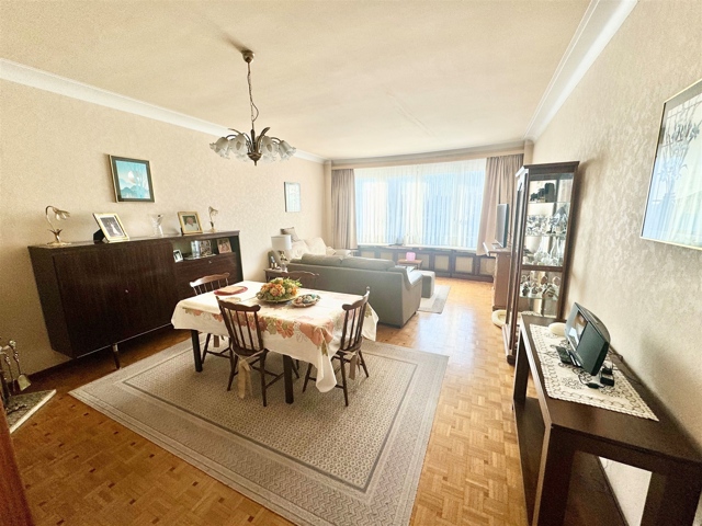 Laeken à l'entrée du Jardin Sobieski, à proximité des commerces et des transports bel appartement de +/- 104 m² composé : hall d'entrée, vestiaire avec placards +/- 3m², wc séparé, beau living de +/- 30 m² en parquet, cuisine équipée de +/- 12 m²; terrasse Ouest de +/- 4 m², 2 chambres de +/- 17 et 15 m², terrasse Est de +/- 3 m² avec débarras, salle de bain avec coin buanderie de +/- 5 m². Cave et possibilité garage box de +/- 20 m² avec porte automatique 30.000 €. Double vitrage PVC, porte sécurisée, vidéophone. PEB : D. A VISITER SANS TARDER. Info et visite sud@macnash.com 02/347.11.47 Ref AG : 272368