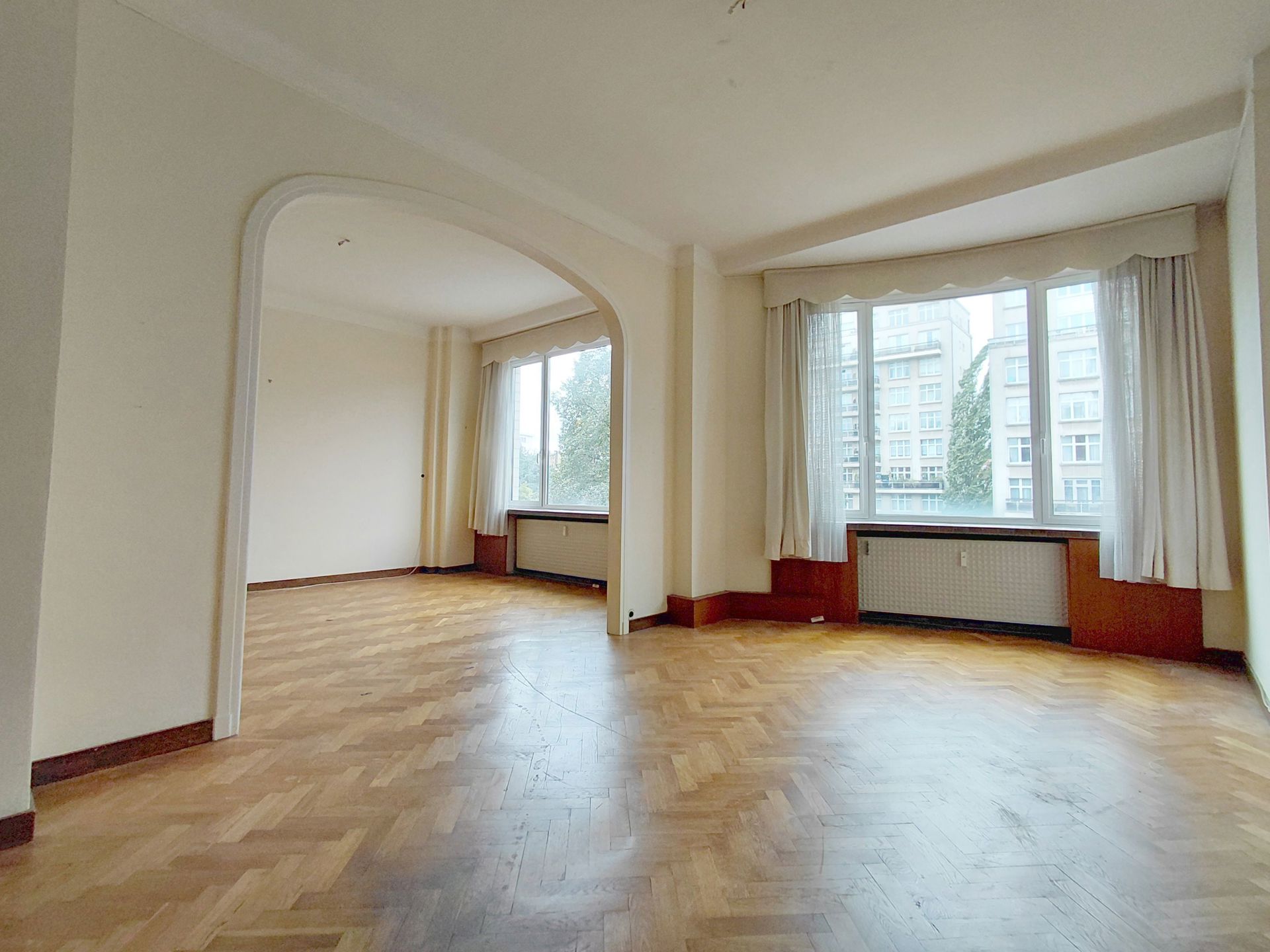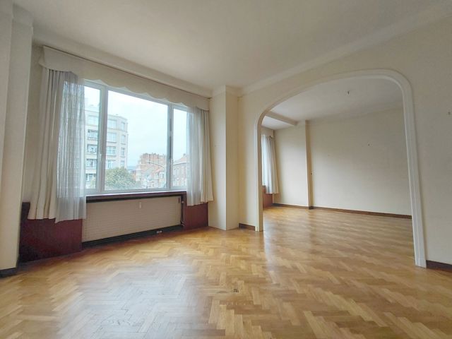 Quartier Montgomery, appartement de 160 m² à rénover et situé au 3ème étage. Il se compose : d'un hall d'entrée avec de nombreux placards/espaces rangement, d'un lumineux séjour de 30m², d'une salle à manger de 25 m², d'une cuisine équipée, de quatre chambres de 17, 14, 8 et 8 m², d'une salle de bains, d'une buanderie avec possibilité de faire une salle de douche, de deux WC séparés et d'une grande terrasse arrière de 15 m². Chauffage central au mazout, porte sécurité, vidéophone, double ascenseur, cave et espace vélos . Parking intérieur (25 000€) Electricité non conforme. PEB : E. Proche des commerces et des transports. Disponibilité immédiate. Infos et visites : Macnash Sud : 0483 43 93 80 ou mg@macnash.com. Référence : 7143074