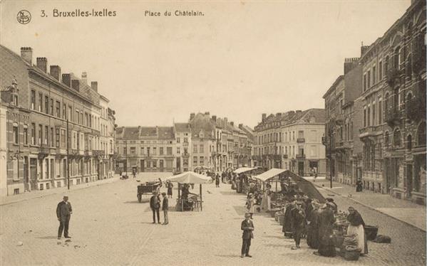 Kort historisch overzicht van de buurt: Het eerste idee voor een plein krijgt vorm in 1879 met een klein vierkant pleintje dat aansluit op de Simonisstraat. De naam van de straat herinnert eraan dat een deel van Elsene vroeger een kastelenij of burggraafschap vormde (grond die onder toezicht van een burggraaf stond), zoals blijkt uit straatnamen als de Baljuwstraat, de Edelknaapstraat, de Provooststraat , de Notarisstraat en de Wethoudersstraat. Het volledige plein is opgetrokken met neoklassieke gevels of gevels die door die stijl geïnspireerd zijn. De oudste gebouwen dateren van rond 1880.